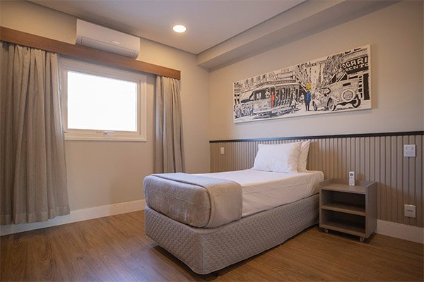 Ambiente climatizado, wi-fi rápido, banho quente, café da manhã e segurança 24h.